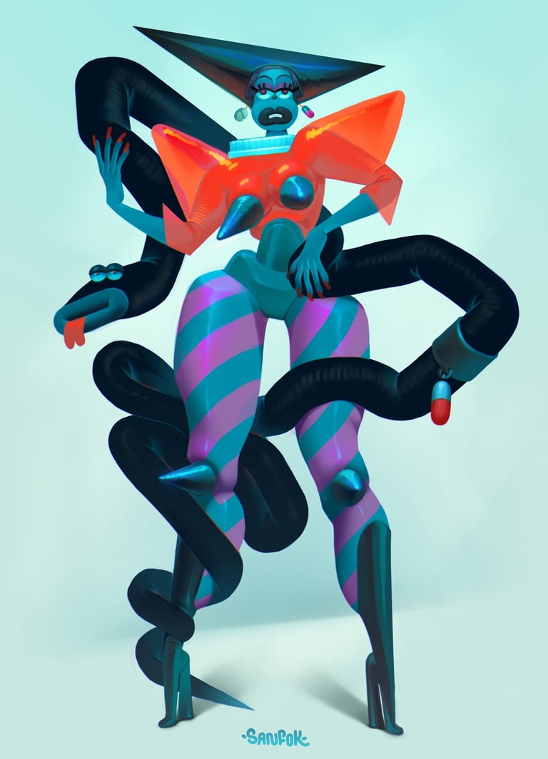 You can see my passion for human body, vivid colors and stylised forms here